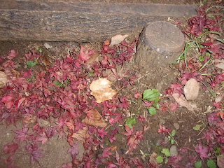 ここからの写真は、あちこちの地面に広がる落ち葉の様子