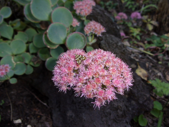 薬用植物園のロック・ガーデン内ホトトギスに莢が出来始めホトトギスの間にリンドウが咲いていますが東京の郊外では気温が高過ぎて青色が綺麗になりませんね