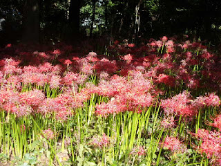 既に満開になっているはず・・・そろそろ枯れ色の子たちも出てきたかな?と薬用植物園のヒガンバナの群れを確認に~