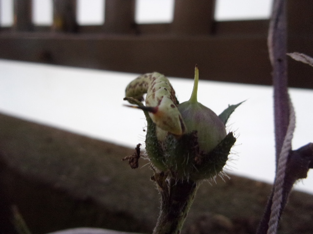 アサガオの処理を始めようと思っていたら・・・アサガオの種の上に青虫が~可愛い顏してるよね~と